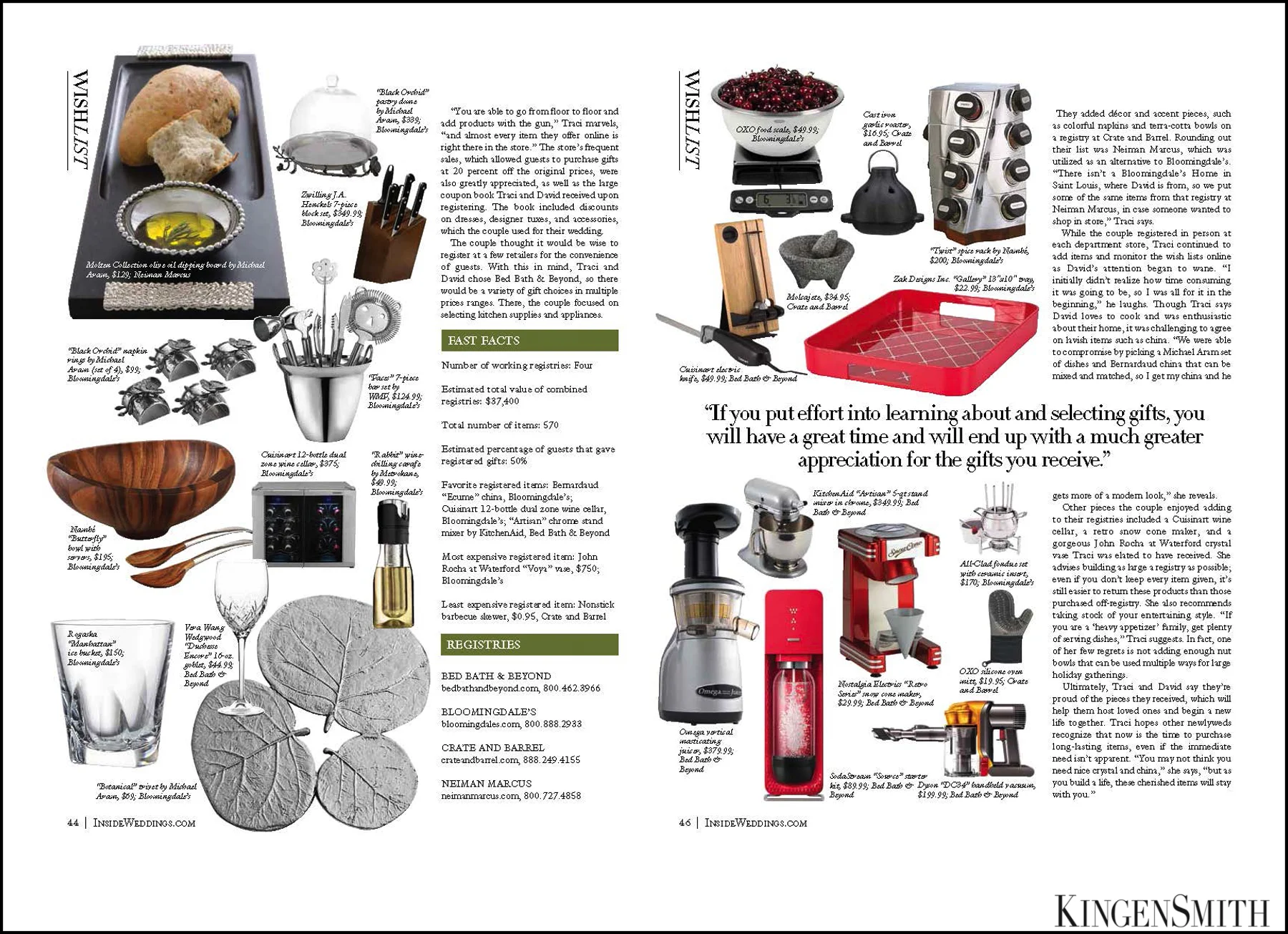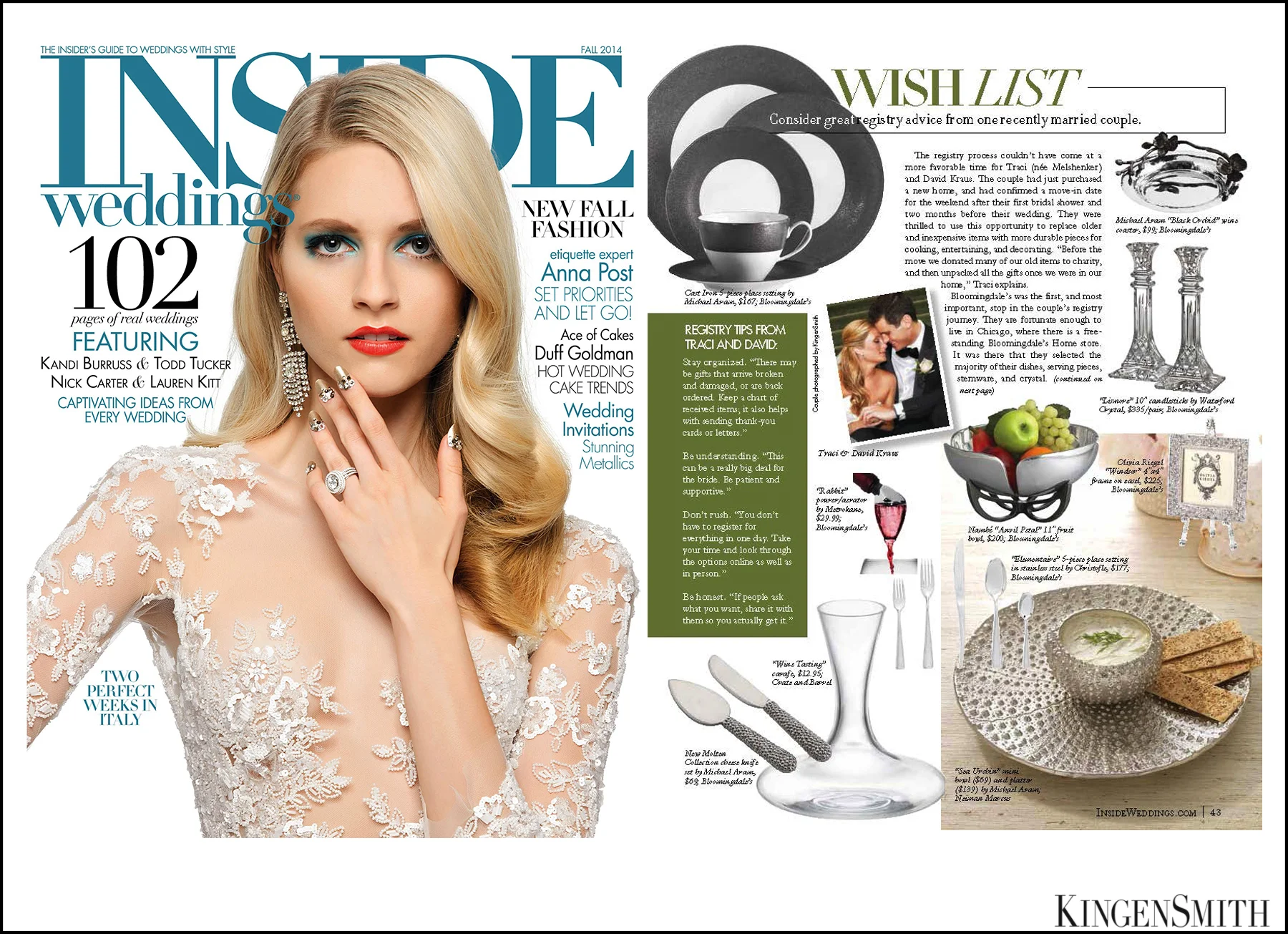 Registering for wedding gifts doesn’t have to be overwhelming and exhausting. If you take your time and focus on creating your new home together, it can actually be pretty exciting! Our couple, Traci and David, provide some excellent tips in the recent issue of Inside Weddings.